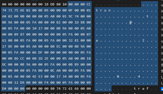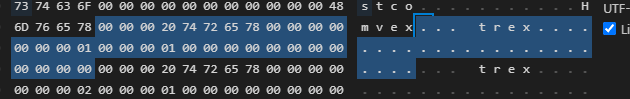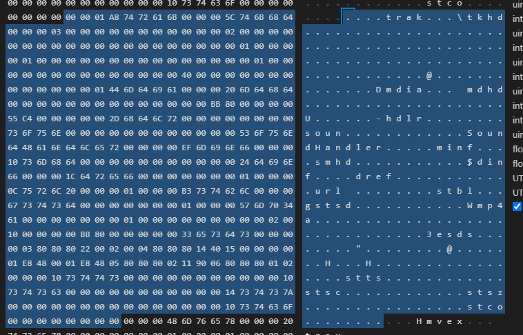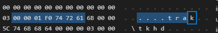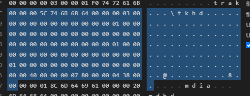 - flags:按位或操作获得。0x000001,表示这个track是启用的,当值为0x000000,表示这个track没有启用;值为0x000002,表示当前track在播放时会用到;值为0x000004,表示当前track用于预览模式;