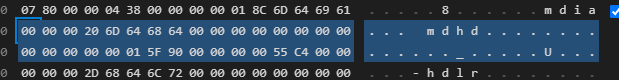 |4bytes |"mdhd"|4bytes |4bytes |4bytes |4bytes |4bytes |1bit*0|5*3bit |