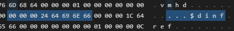 |4bytes |"vmhd"|4bytes |2bytes*0 |2*3bytes*0|